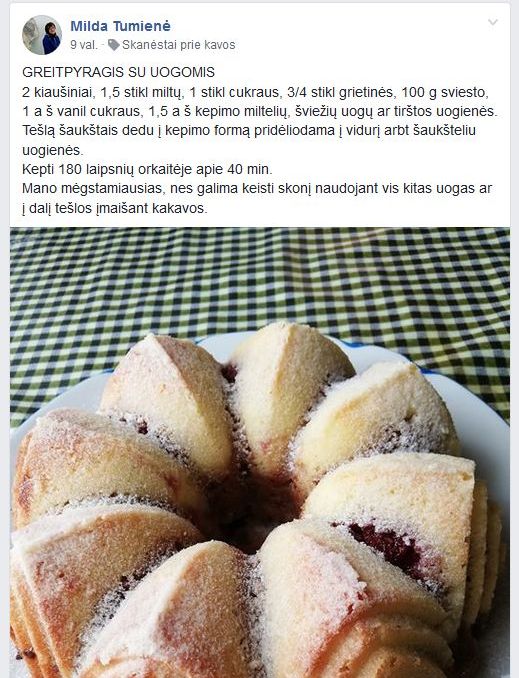 Mūsų FB grupėje Kava ir skanėsta. Receptai. Milda pasidalino receptu, kuris kaip mat pelnė auditorijos simpatijas. Pyrago forma hipnotizuoja žvilgsnį, o recepto paprastumas gundo viską mesti ir kaip mat pasigaminti šį skanėstą.